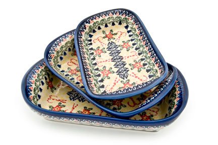 Buy Now! Polish Pottery Christmas Candy 3 PC Rectangular Tray Set