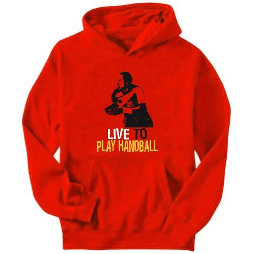 --> Details : Live To Play Handball Sports Mens Hoodie (Red, Size Large)